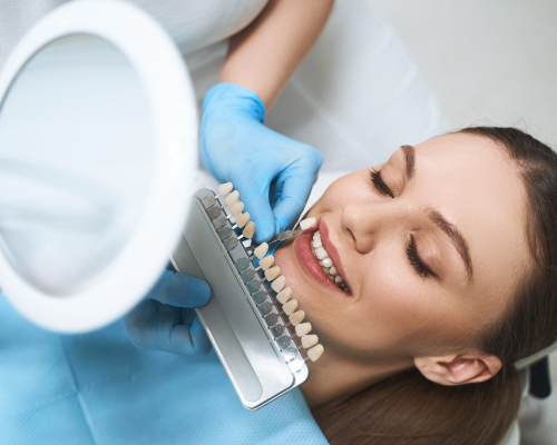 Dental veneers (also called porcelain veneers or dental porcelain laminates) are wafer-thin, custom-made shells of tooth-colored materials used to cover the front surface of teeth to enhance your appearance. Dental veneers shells are bonded to the front of the teeth to change the color, shape, size, or length of teeth.